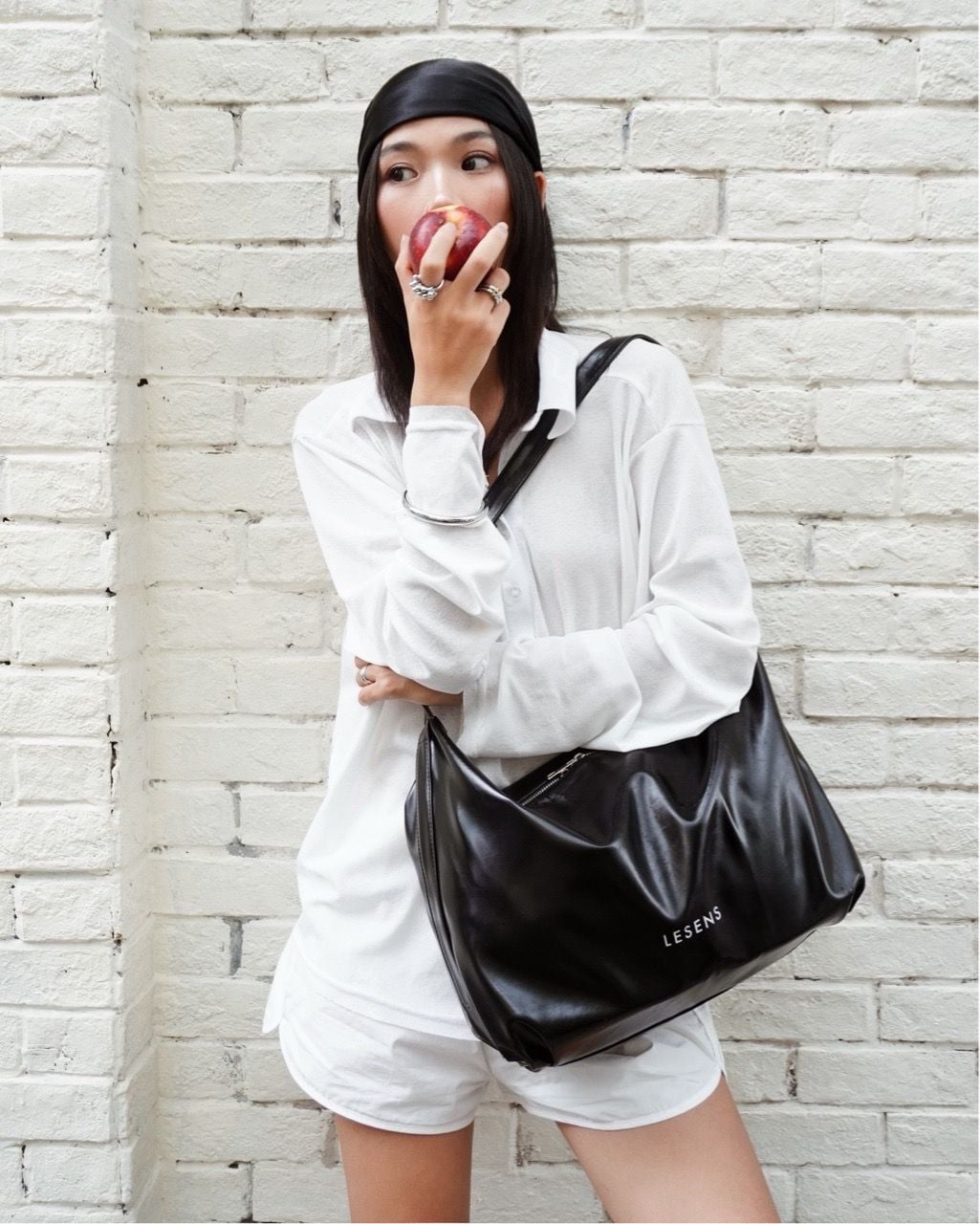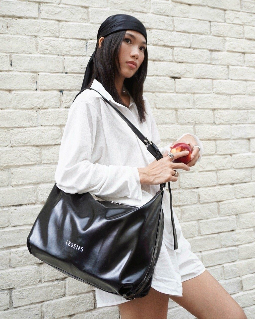 Aimee Faux Leather Shoulder Bag - Black